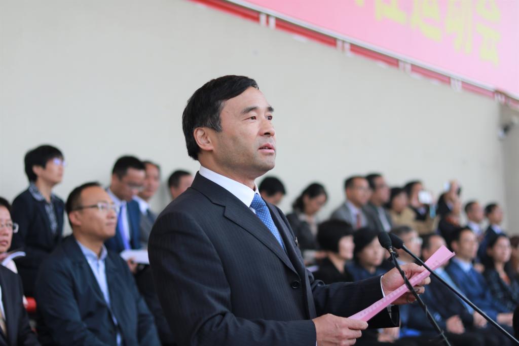 升旗礼毕后,李俊伟副校长致辞。李副校长强调了习近平总书记在全国教育大会上所讲的“要树立健康第一的教育理念,开齐开足体育课,帮助学生在体育锻炼中享受乐趣、增强体质、健全人格、锤炼意志”重要精神。随后,李副校长总结了我校今年的体育工作取得的成就,他表示学校高度重视学校体育的发展,坚持“以人为本、健康第一”的指导思想,大力倡导全民健身,积极开展“阳光体育”活动,不断完善体育教学管理体系,改革和创新体育课程设置,组织丰富多彩的体育赛事,以激发广大师生对体育运动的热情。此外,李副校长特别强调了“友谊第一、比赛第二”的竞技精神,希望全体参赛队员遵守规则、尊重裁判,顽强拼搏、勇于争先,赛出水平、赛出风格。