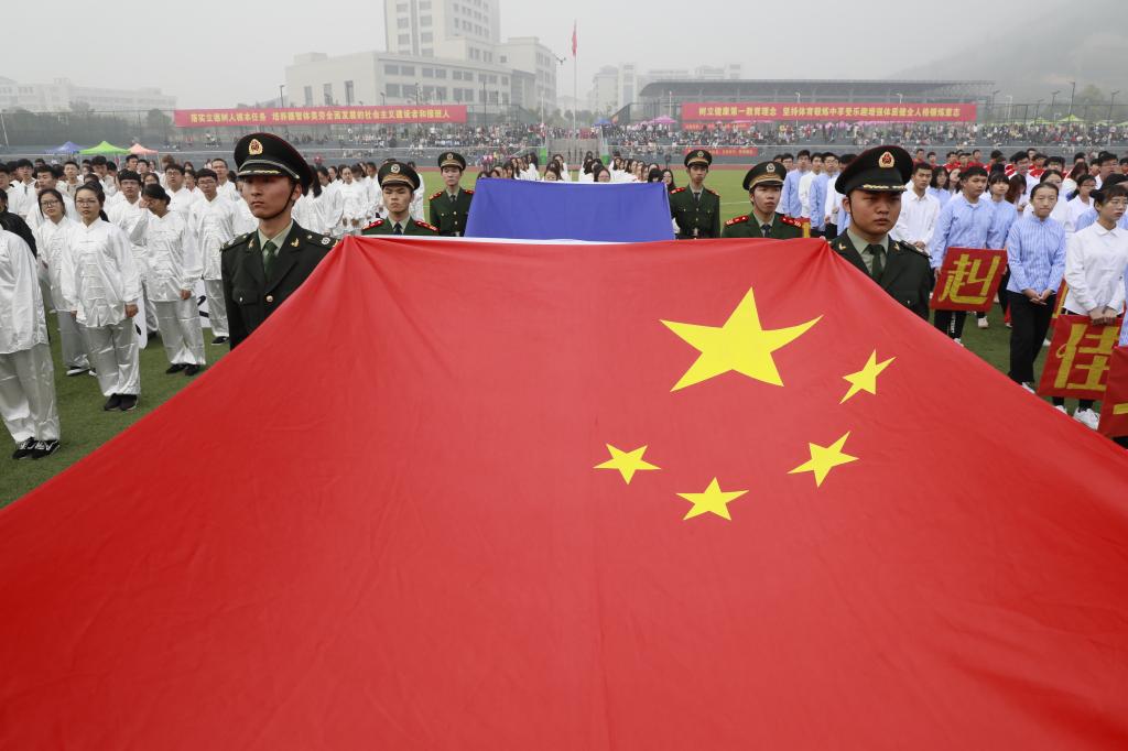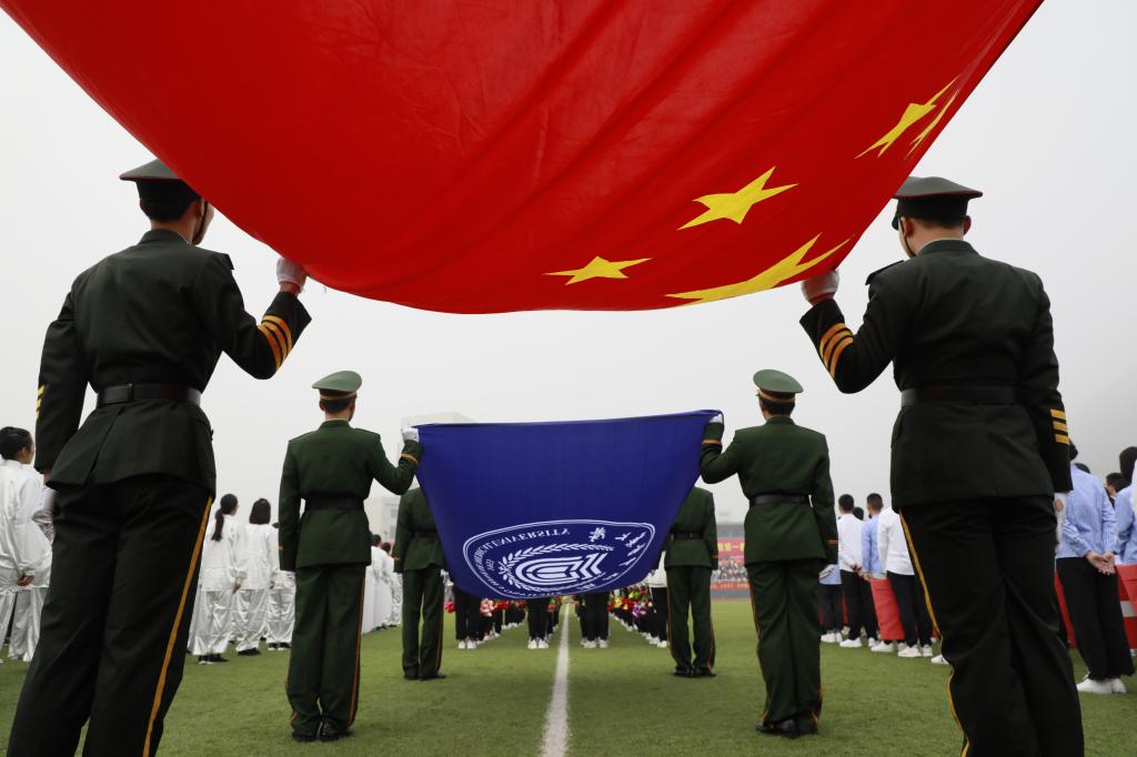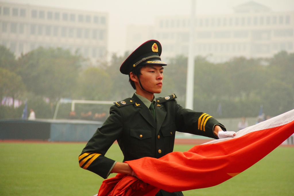 在各方阵进场完毕后,全体起立,奏唱国歌升国旗。俊朗的国旗手,冉冉升起的国旗,嘹亮的声音,恢弘的气势展示了浙江中医药大学朝气蓬勃的一面。