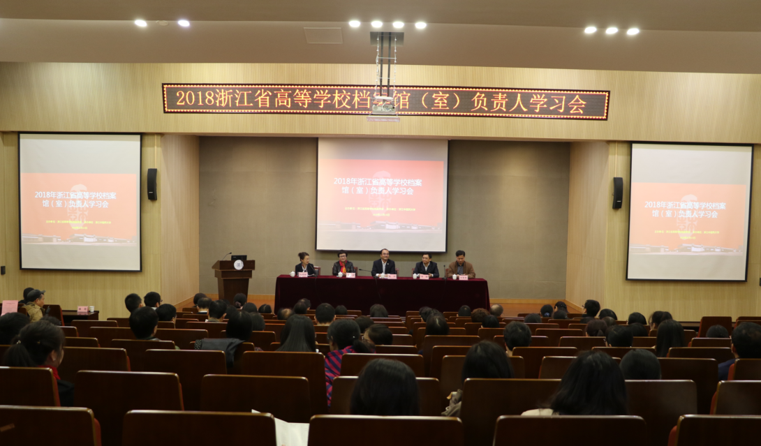 11月15日—16日,2018年浙江省高等学校档案馆(室)负责人学习会在我校图书馆学术报告厅举行。省高等学校档案学会理事长、浙江大学档案馆馆长马景娣,副理事长、省档案局业务指导处处长许春芝,省高校档案学会理事会全体成员及来自全省各高校的档案馆(室)负责人100余人参加了本次学习会。校党委副书记陈刚出席并致辞。