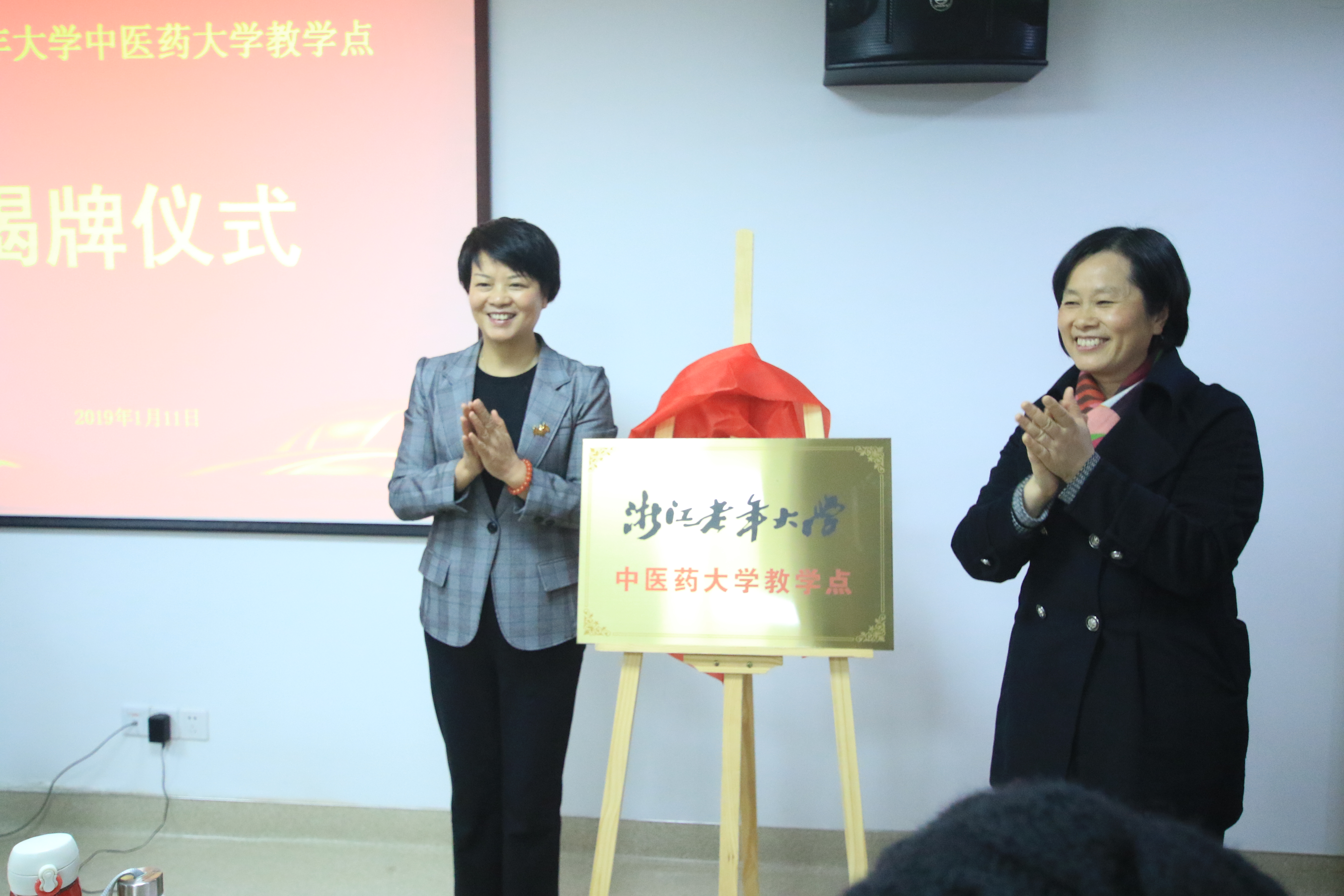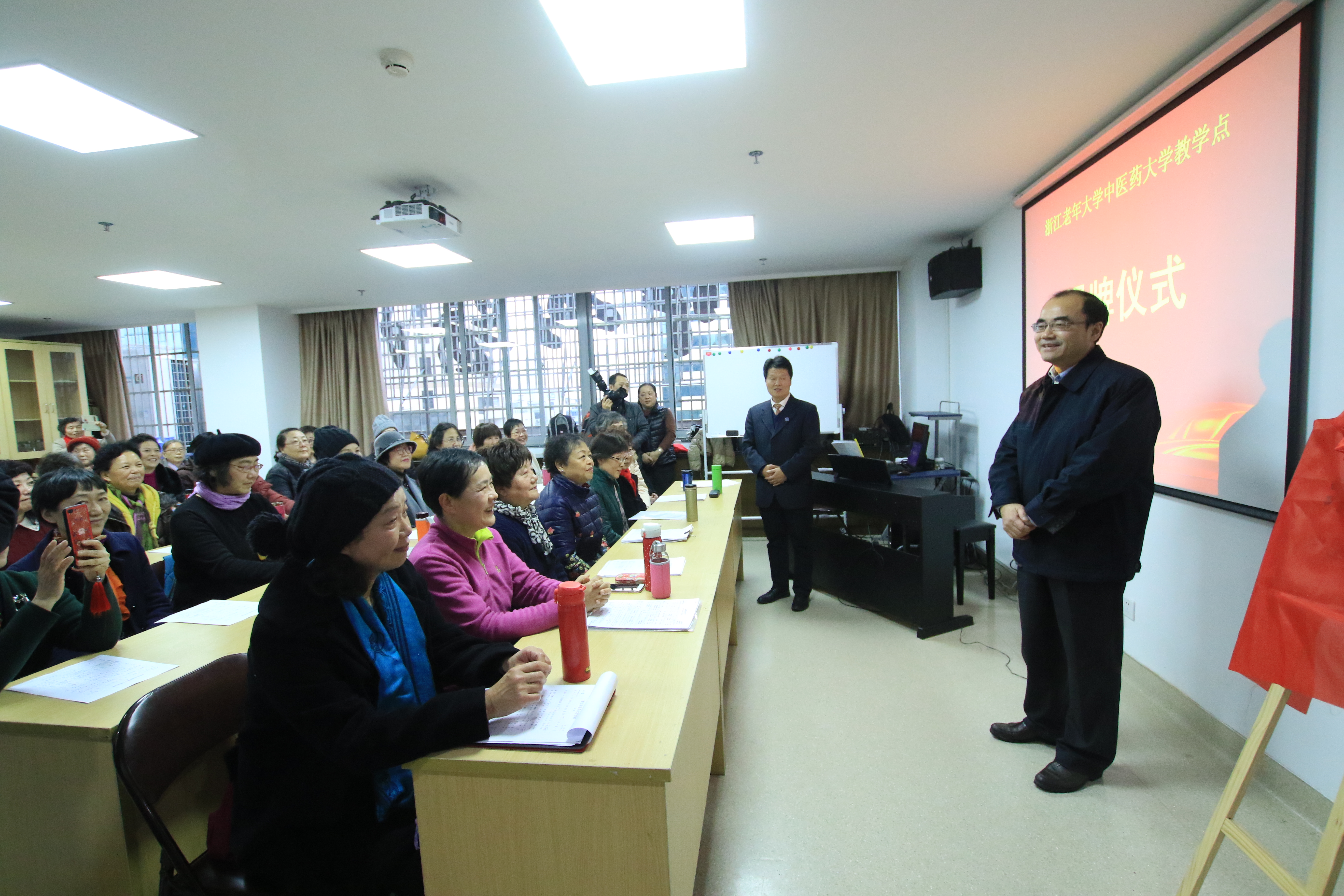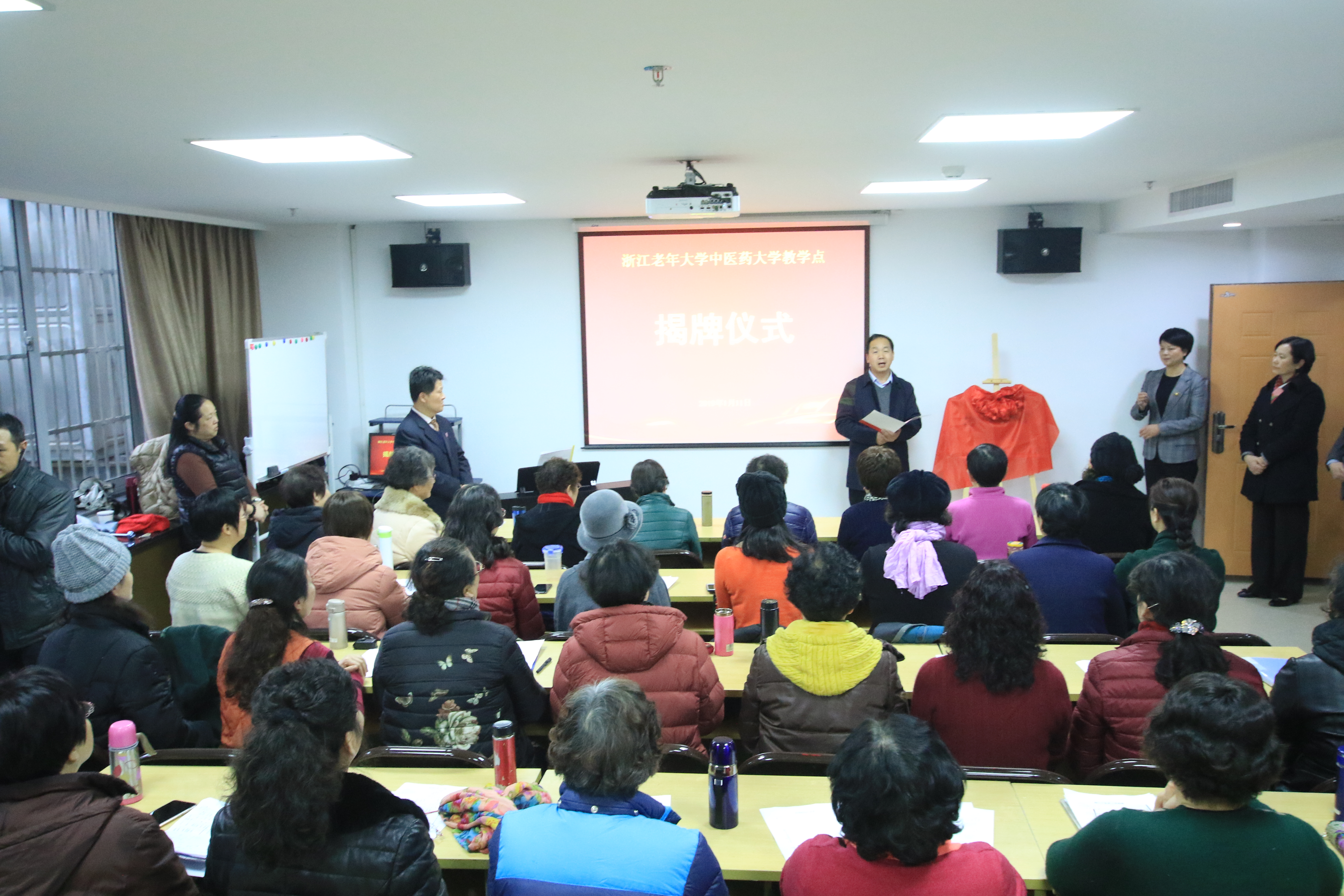 1月11日,浙江老年大学中医药大学教学点在学校老年活动中心揭牌,这是浙江老年大学在浙江省高校开办的首个教学点。省委组织部副部长、省委老干部局局长鲍秀英,学校党委书记孙秋华为教学点揭牌。学校党委副书记陈刚,浙江省委老干部局、学校相关职能部门和学院负责人、浙江老年大学有关人员,老同志学员代表共90余人出席了揭牌仪式。