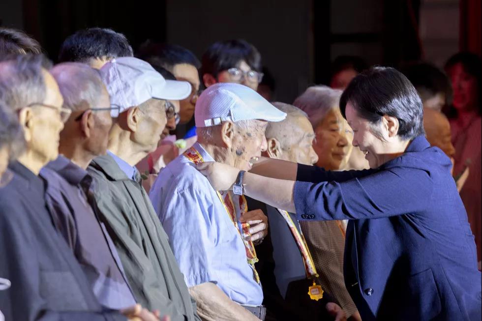 为了加强爱国主义教育,一批在中华人民共和国成立之前参加革命工作的老同志、老战士,获得了由中共中央、国务院、中央军委颁发的“庆祝中华人民共和国成立70周年”纪念章。我校有38位老同志获此殊荣。现场,校党委书记孙秋华为亲临展演现场的17位老同志佩戴了纪念章。这是新中国对功勋模范的最高褒奖,也是70年砥砺奋进的深刻铭记,现场师生深受感动和教育。
