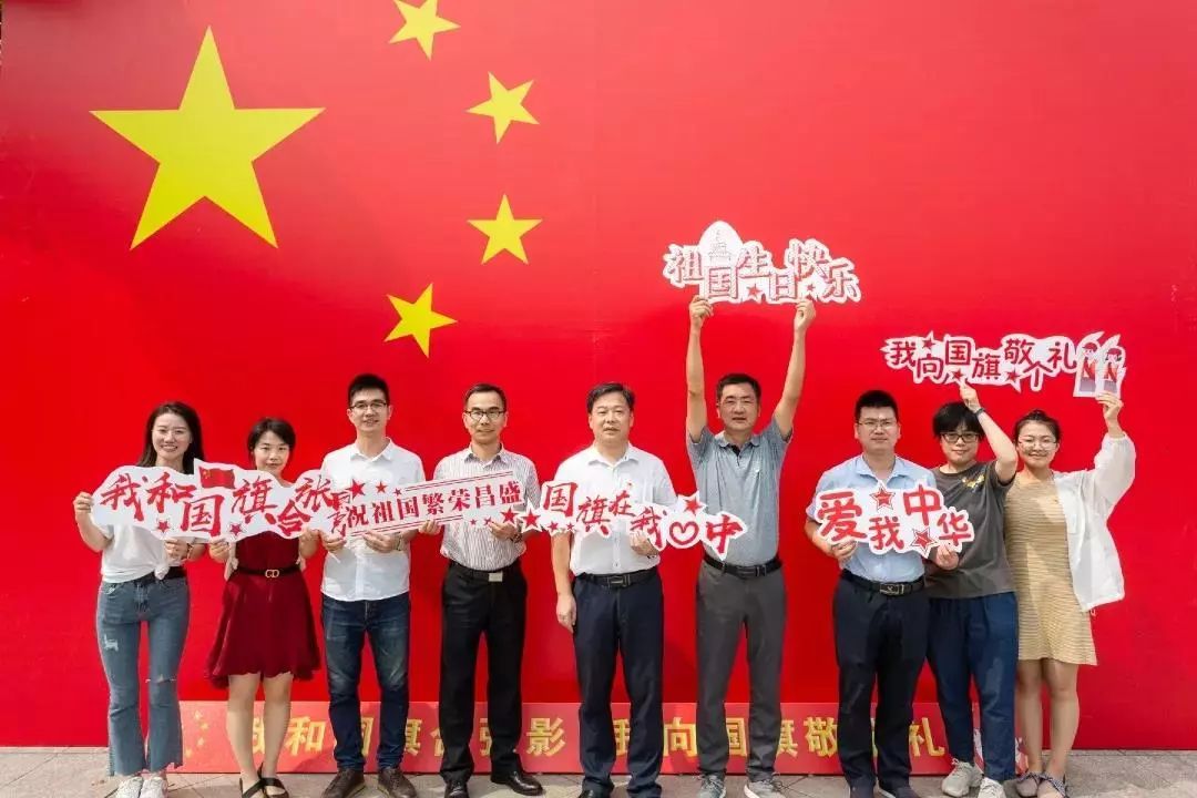 为庆祝新中国成立70周年学校开展了“我与国旗合张影”、颁授纪念章、师生合唱朗诵展演等一系列活动。