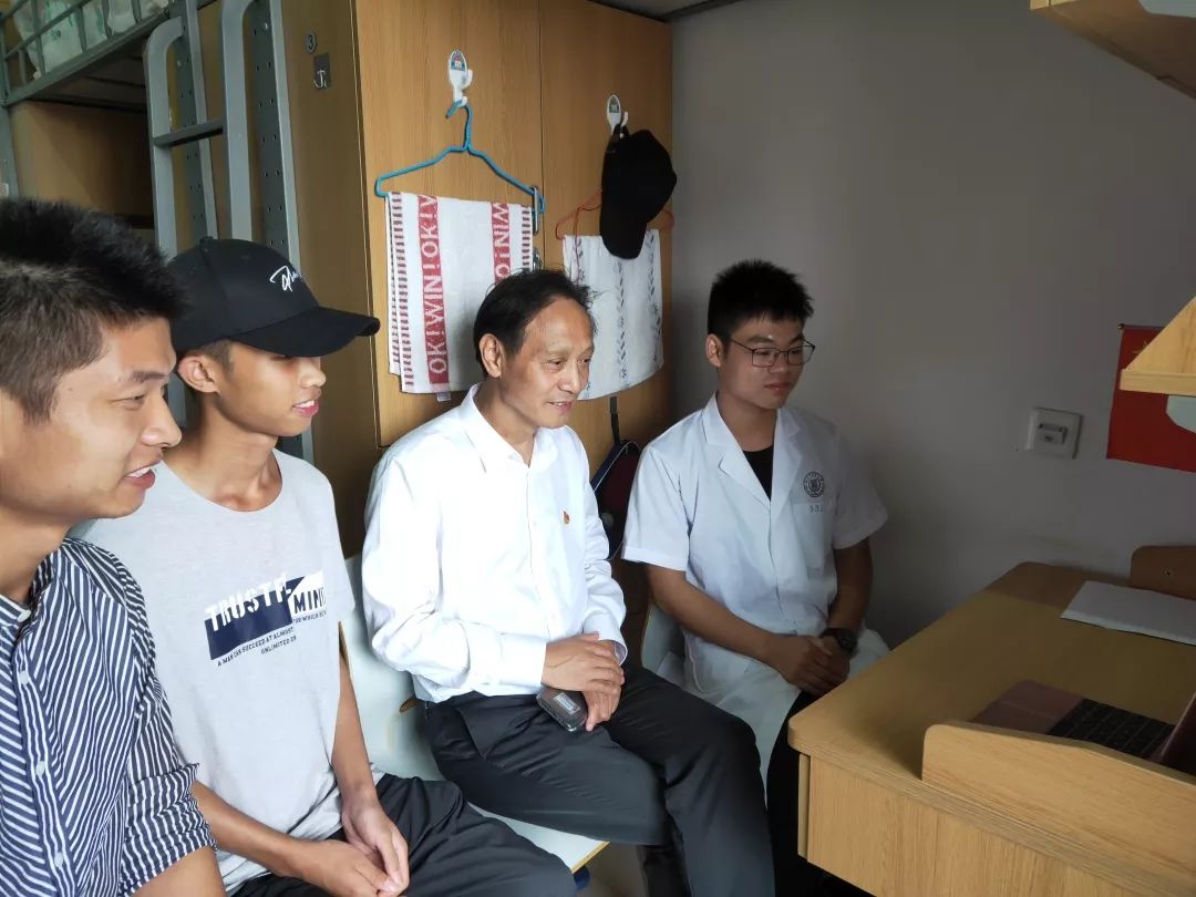 ▲富春校区值班老师走进学生寝室与学生共同观看直播