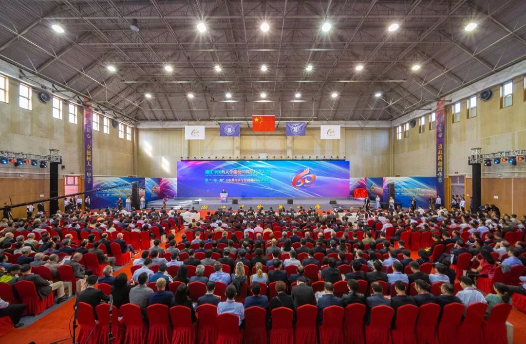 金秋时节,杭城桂花香飘十里;六十芳华,钱塘江畔欢声萦绕。10月19日上午,浙江中医药大学滨文校区体育馆内高朋满座、掌声如鸣,浙江中医药大学建校60周年纪念大会暨“一带一路”中医药传承与发展国际论坛开幕式隆重举行。各界嘉宾、海内外校友、师生员工齐聚滨江,共襄盛会。