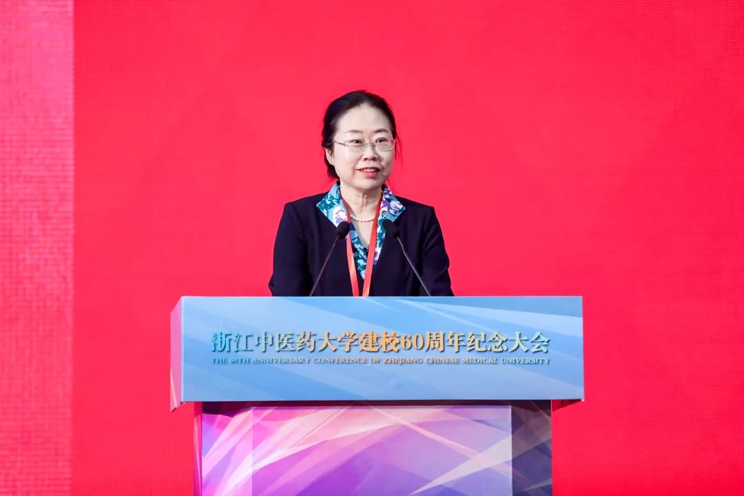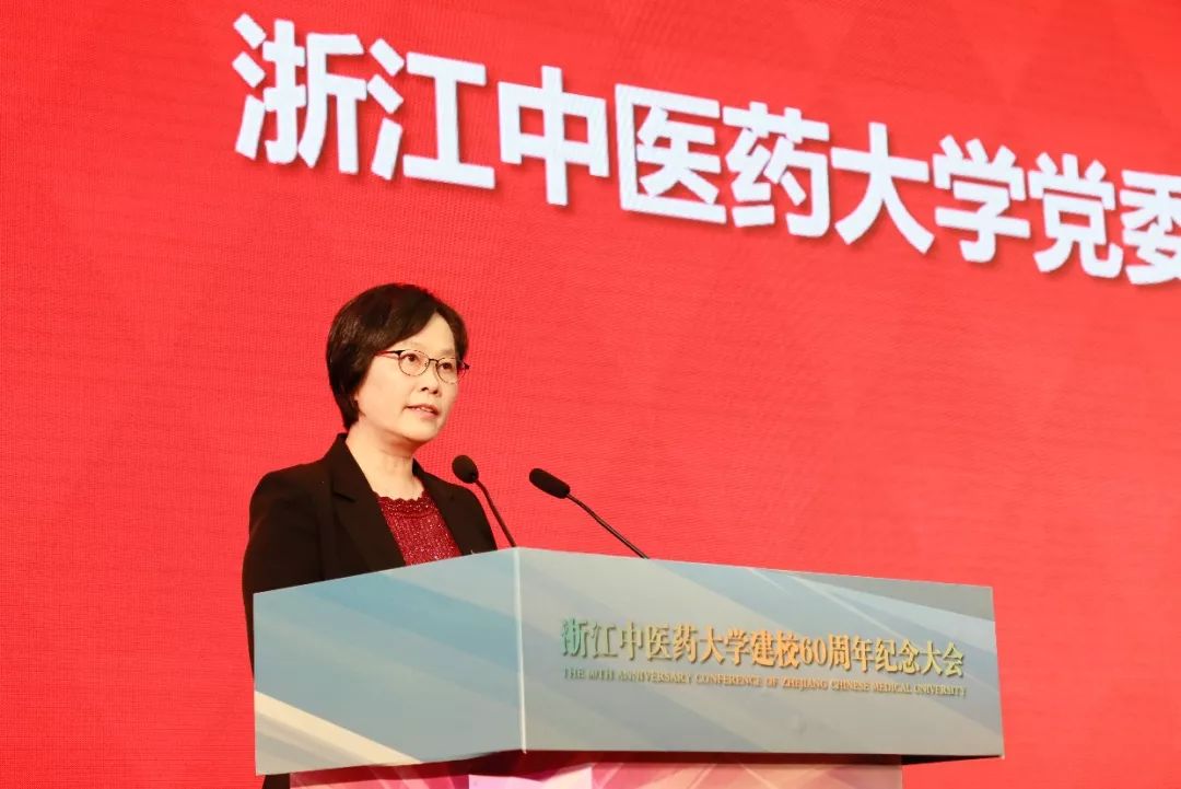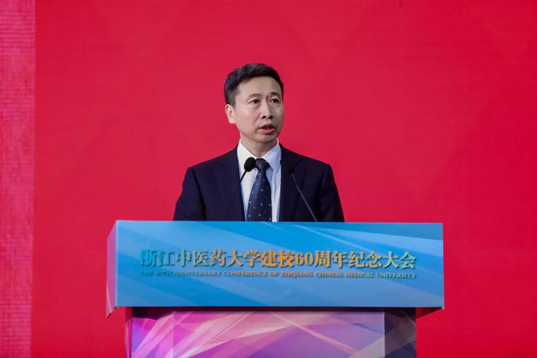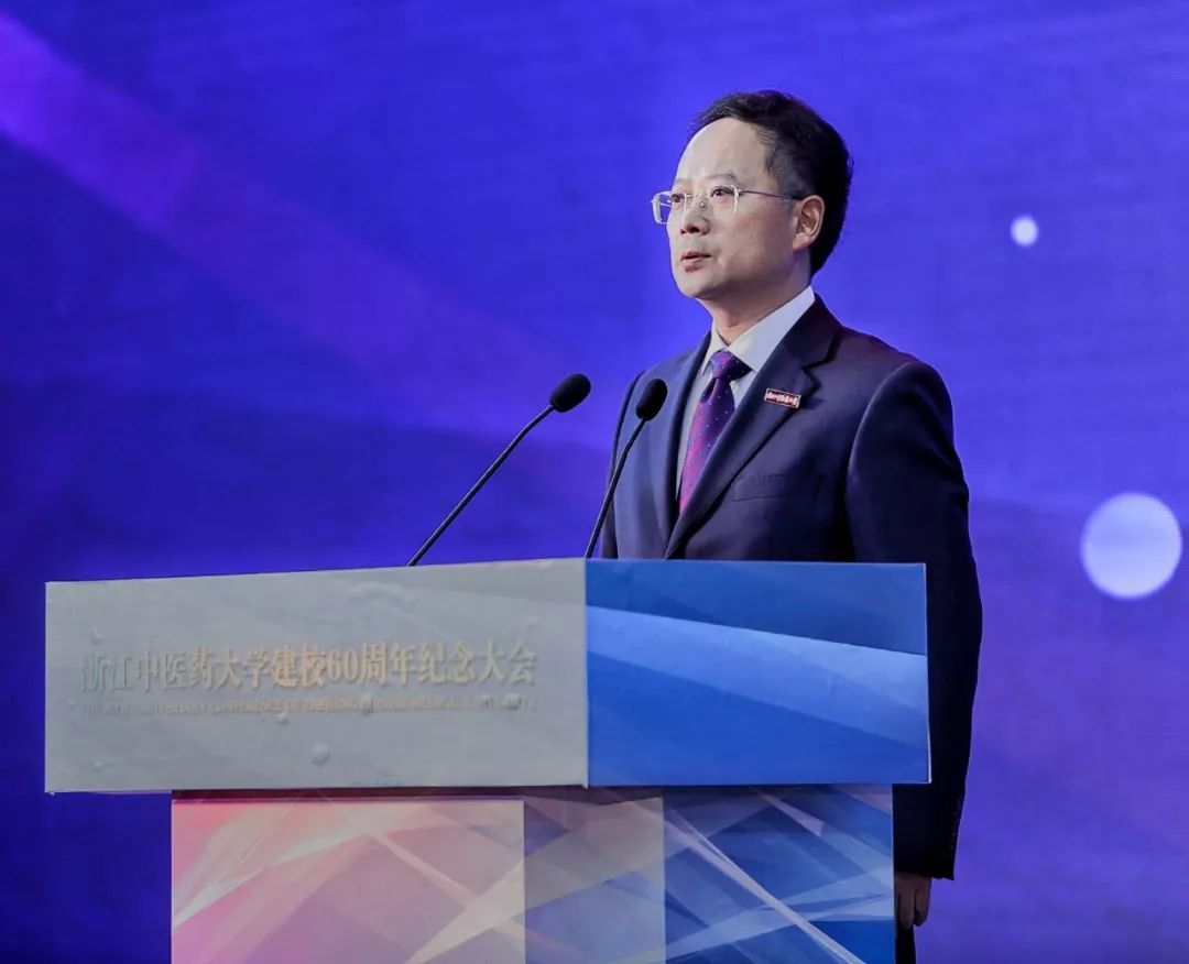 王志勇和成岳冲分别代表国家中医药管理局和浙江省人民政府向全校师生和海内外校友表示祝贺。他们都充分肯定了学校60年来,在人才培养、科学研究、社会服务等各项事业中取得的丰硕成果,充分肯定了学校为中医药事业和区域经济社会发展做出了重要贡献。他们表示,国家中医药管理局和省政府都会一如既往地支持学校的建设和发展,希望学校能以建校60周年为新起点,更好服务国家地方战略、深入推进中医药国际化,努力开创下一个甲子发展新篇章。