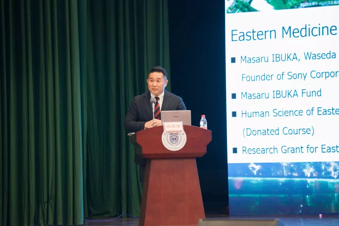 日本早稻田大学扇原淳教授做主题报告,题目是《中医药学与人类科学整合在解决全球健康问题中所面临的挑战》(A Challenge to Solve Global Health Issues by Integrating Traditional Chinese Medicine with Human Sciences)。扇原淳教授为我们介绍了早稻田大学的基本情况、以及他们在补充和替代医学方面做的一些创新性工作。自2017年2月早稻田大学与我校签署学术合作框架协议以来,扇原淳教授为推动两校之间学术互访、专业建设、学生联合培养等方面的合作作出了重要贡献。