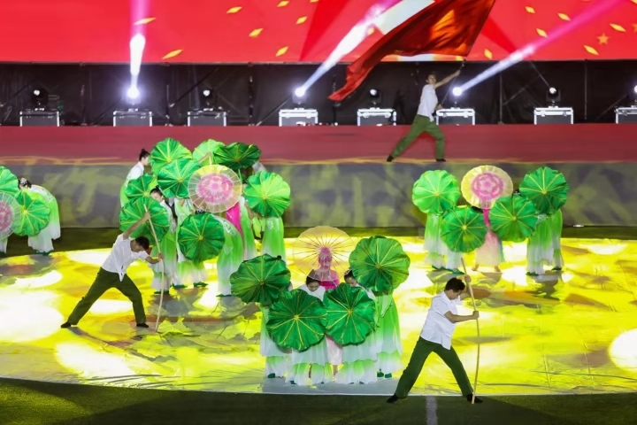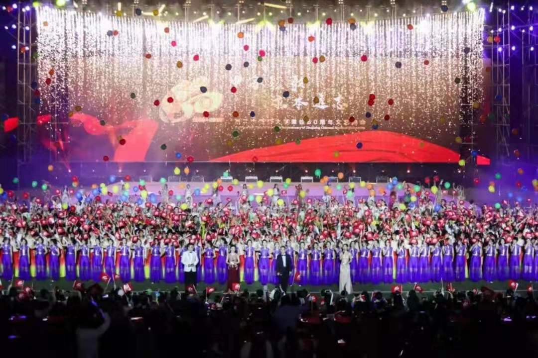 据悉,此次晚会采用中心舞台结合情景式表演的呈现方式,共有1500余名演职人员参与,通过舞蹈、民乐、武术、杂技、音乐说唱等多种节目形式,全面展示了学校建校60年来的风雨历程和办学成就,全校师生同心同德、励精图治、抢抓机遇、奋发有为,努力在建设具有国际影响的教学研究型大学征程中阔步前行、谱写新篇、再创辉煌!