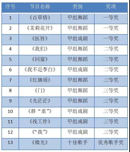 日前,浙江省教育厅公布了2019年浙江省大学生艺术节获奖信息,我校获得一等奖3项,二等奖3项,三等奖6项,获“十佳歌手优秀歌手”称号1项,校团委戎宇飞老师获省“优秀指导老师”称号,学校获“优秀组织奖”。现场展演期间,学校舞蹈《百草情》参加艺术节闭幕式演出,这是我校舞蹈类节目在省大艺节首次获得一等奖并登台汇报演出。