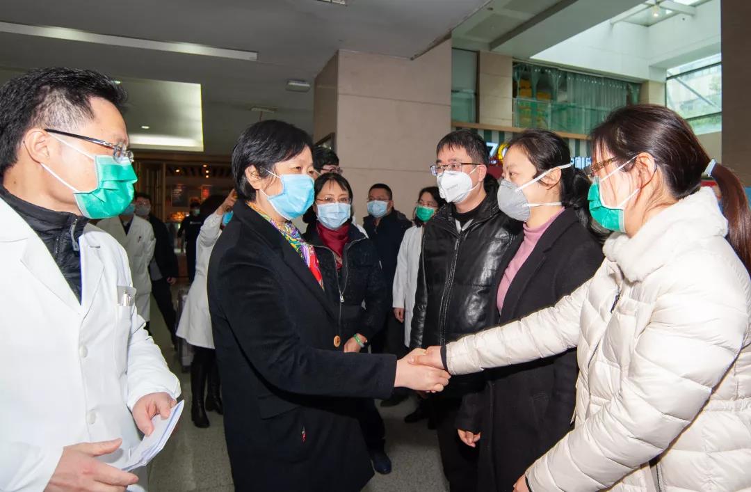 校党委书记孙秋华为这四位“最美逆行者”送行。仪式上,孙秋华书记代表学校党政班子对四位英雄主动请战的无私奉献致以崇高敬意和衷心感谢,对医院防控一线的工作人员表示亲切的慰问和新春的祝福;她又叮嘱奔赴武汉的医护人员要一切行动听指挥,以高度负责的态度履行好各自职责,全力以赴做好医疗救治各项工作,展现医院的风采、浙江的风采,展示医护人员的良好形象。完成任务,不辱使命。她强调所有出征者,按院感规范做好防护工作,医院要做好坚强的后盾,为医护人员解决好后顾之忧!期待各位不辱使命,出色完成任务,平安凯旋、顺利归来!
