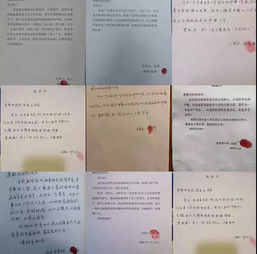 除他们之外,临床医护工作者们递交的请战书接连不断......他们表示,这是医护人员职责所在,只要疫情需要、人民需要,他们将义无反顾。他们也会保护好自己的。