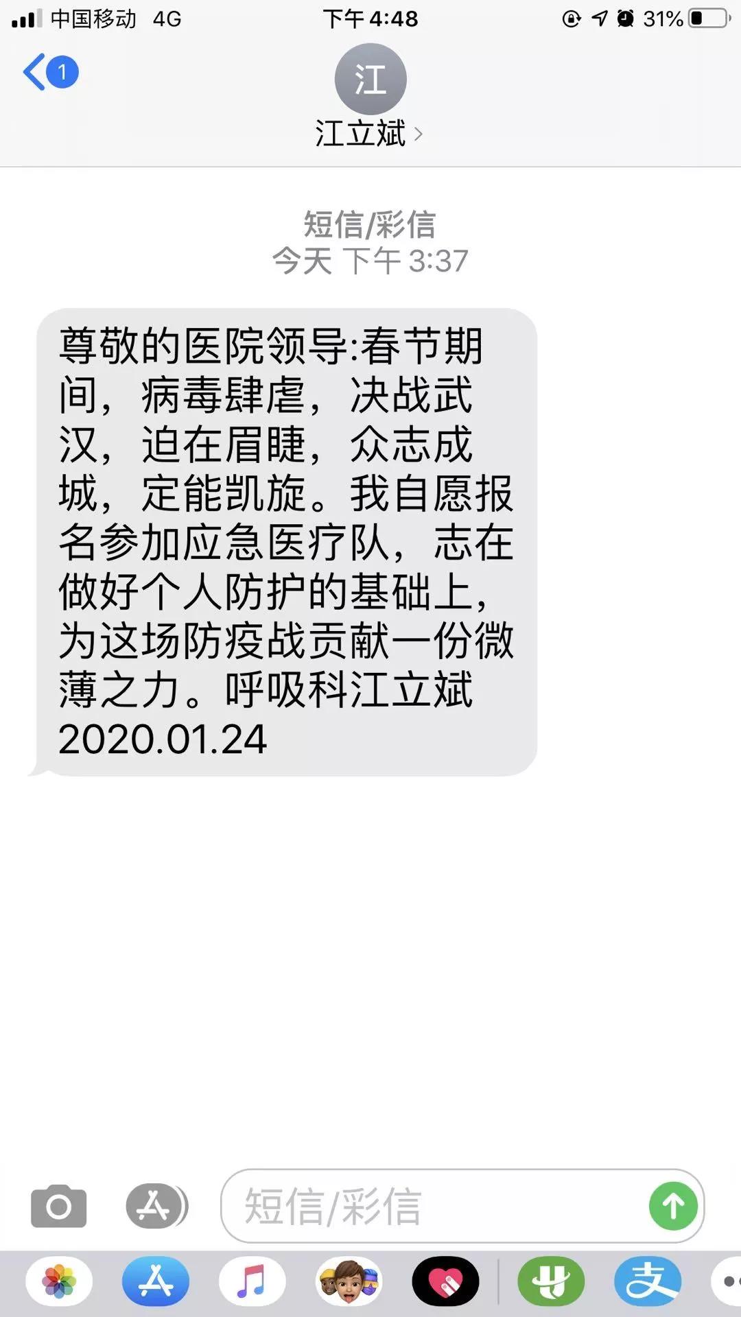 大年三十,原本是举家团圆的时刻,但面对来势汹汹的新型冠状病毒感染的肺炎疫情,我校附属医院的这四位勇士积极响应支援倡议,主动递交支援武汉一线的请战书,时刻准备支援武汉。