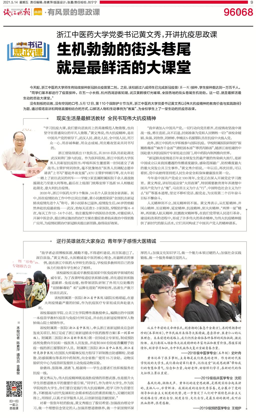 《钱江晚报》整版报道校党委书记黄文秀上“书记思政课”