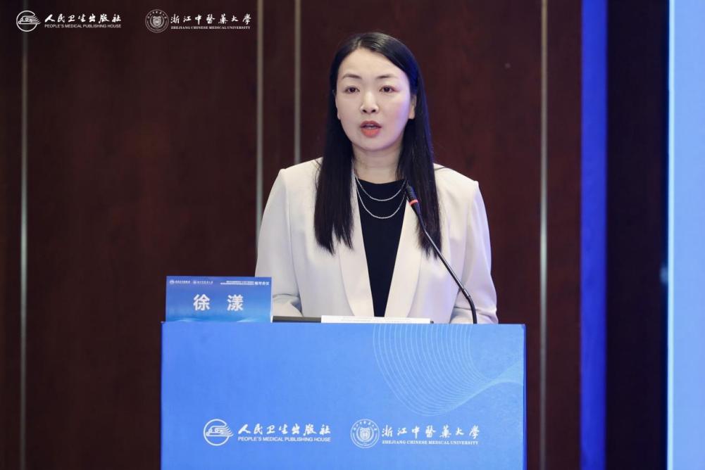徐漾充分肯定我校在中医药人才培养、课程教材教学一体化建设方面取得的成绩。她指出,高质量教育离不开高质量教材,而高质量教材需要有组织建设和体系化编写。中医药教材不仅是知识传递的载体,更是文化传承与价值塑造的重要途径,必须坚持“育人为本”,并积极顺应教育数字化和人工智能的发展趋势;教材建设要注重科学规划,体现时代性与适用性;更要加强跨院校、跨学科、产学研医的协同编写,推动教材从“精品”迈向“经典”。