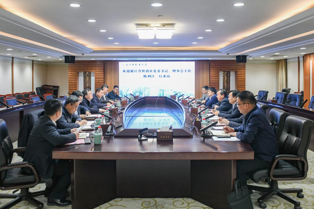 12月2日,浙江省供销合作社联合社党委书记、理事会主任陈利江一行来校调研。我校党委书记王斌出席座谈会。