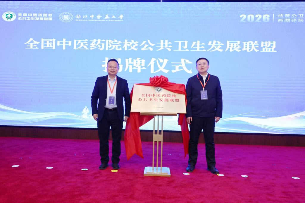 3月27日,由我校主办,公共卫生学院承办的岐黄公卫·西湖论坛暨全国中医药院校公共卫生发展联盟成立大会在杭州顺利召开。国家中医药管理局医政司副司长邢超,我校校长陈忠、副校长温成平、党委副书记黄爱军、副校长范骁辉,省卫生健康委中医药综合管理处处长冯红德,陆军军医大学军事预防医学院毒理学研究所所长曹佳和来自全国中、西医院校,中国疾病预防控制中心的专家及代表等参加会议。教育部公共卫生与预防医学专业教学指导委员会主任委员、全国中医药院校公共卫生发展联盟战略指导委员会主任委员李立明以视频方式向大会致辞。开幕式由黄爱军主持。