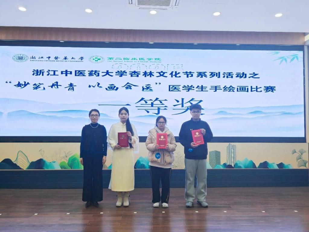 为进一步丰富医学生校园文化生活,推动医学与美育教育的深度融合,培养学生的创新思维与人文素养,12月4日,我院于博爱楼二楼学术报告厅举办了2025年浙江中医药大学杏林文化节系列活动之“妙笔丹青 以画会医”——医学生手绘画比赛。作为杏林文化节的特色活动之一,本次比赛吸引了来自各年级的医学生踊跃参与,同学们以笔为媒、以画寄情,用细腻的笔触勾勒出医学世界的独特魅力,为杏林文化节增添了一抹亮丽的艺术色彩。大赛评委由我校宣传部副部长赵颖,杭州一目可视数字科技有限公司创始人兼CEO 周舒扬,我校基础医学实验教学中心主任毕晓晨,浙大二院血管外科医生冯燕飞组成。