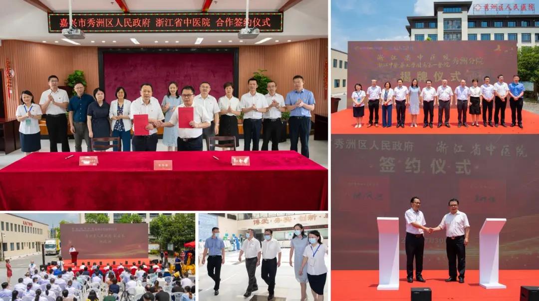 7月30日上午,附属一院与嘉兴市秀洲区人民政府合作办医签约仪式暨浙江省中医院秀洲分院揭牌仪式在秀洲区人民医院举行。