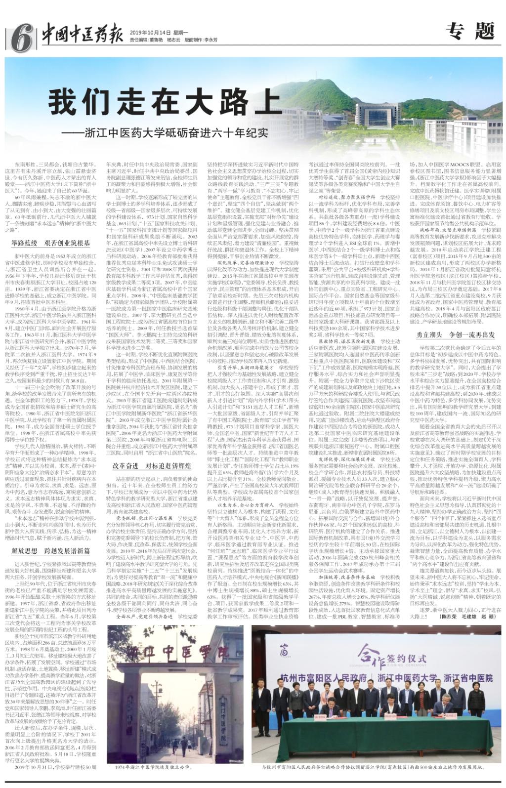 中国中医药报:我们走在大路上——浙江中医药大学砥砺奋进六十年纪实