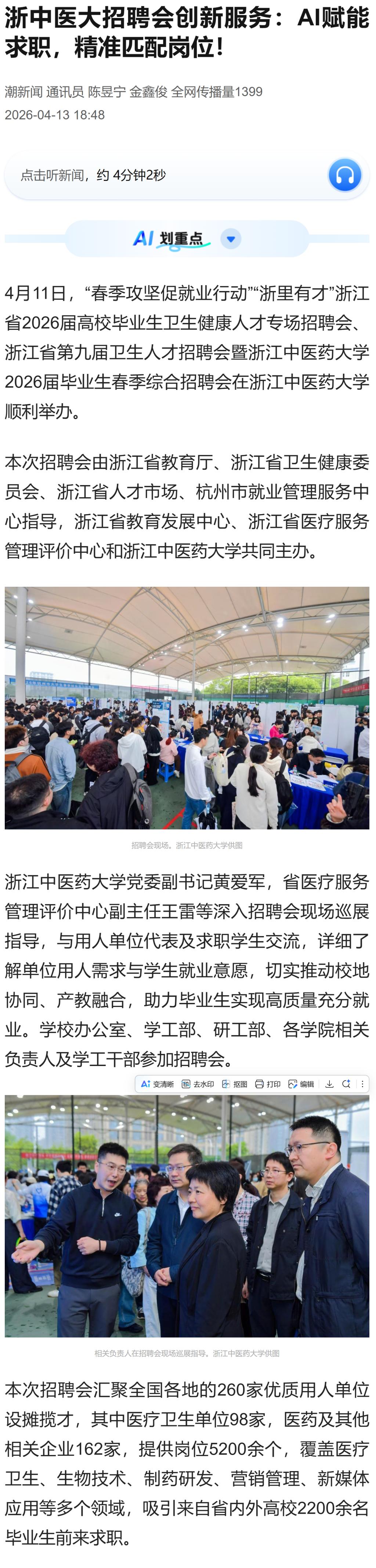 潮新闻:浙中医大招聘会创新服务:AI赋能求职,精准匹配岗位!